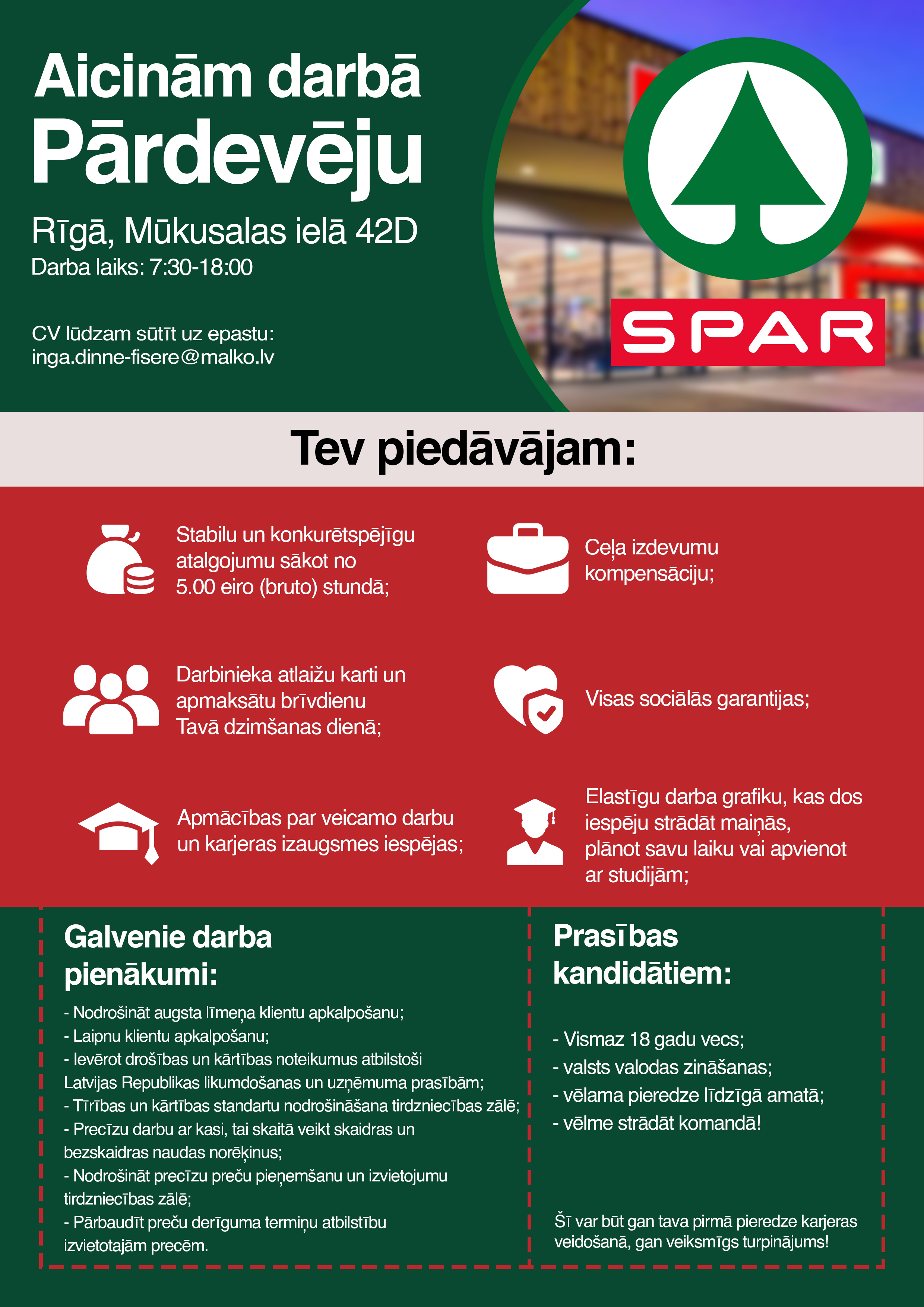 Pārdevējs/-a SPAR veikalā, Mūkusalas ielā 42D, Rīgā